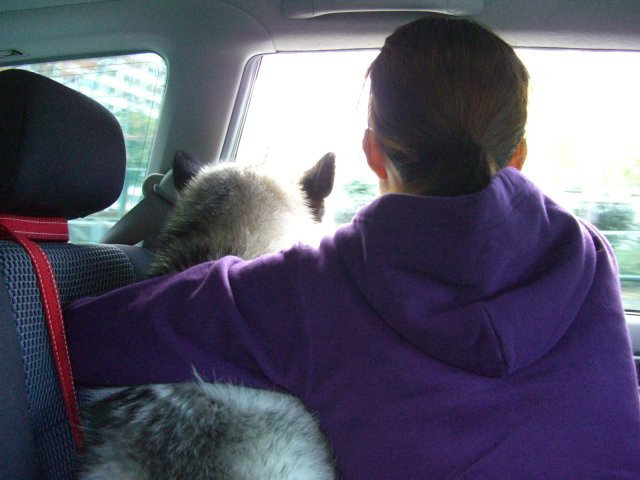 家族四人+1匹で、車に乗るのは初めて。