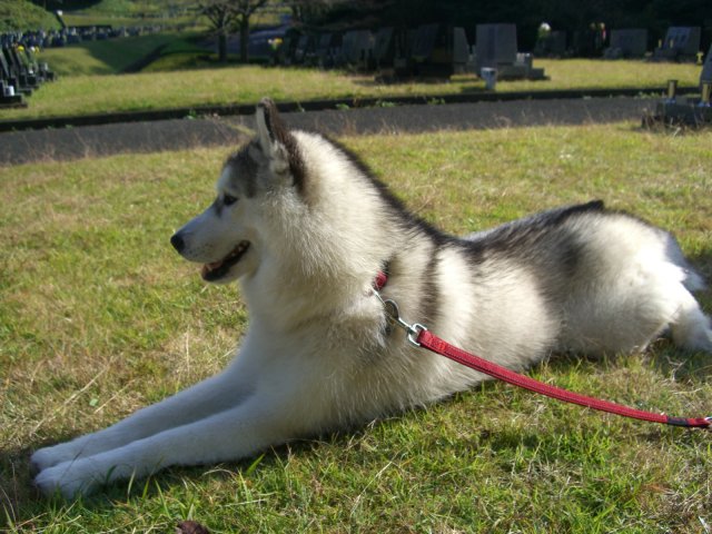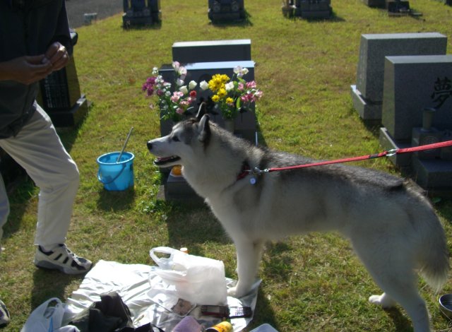 霊園内を散歩する伊佐次。
