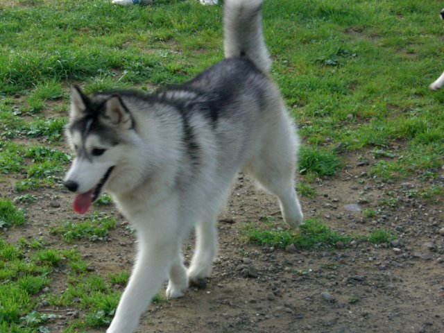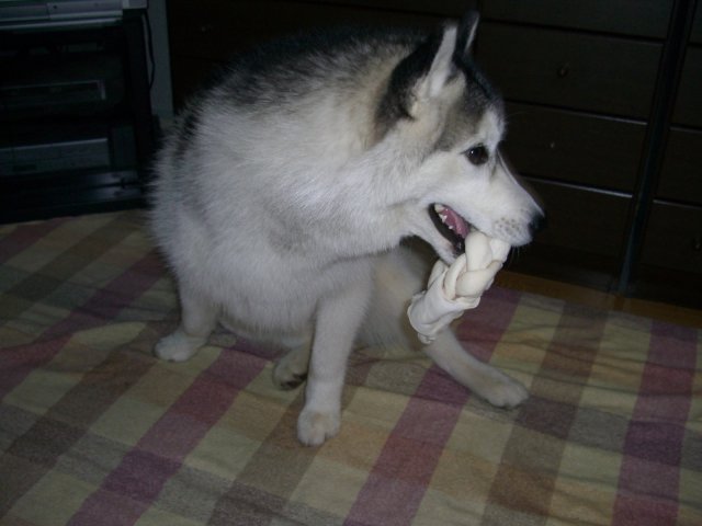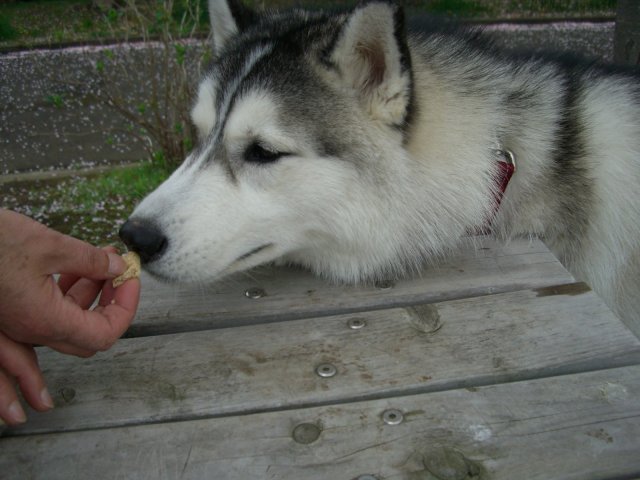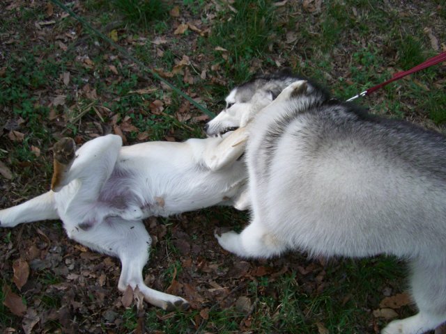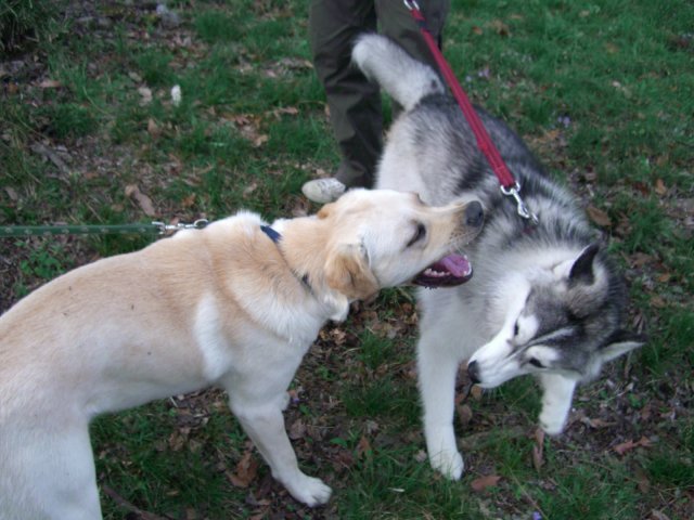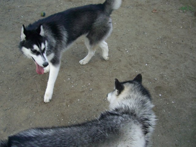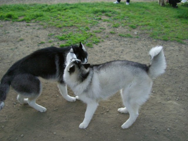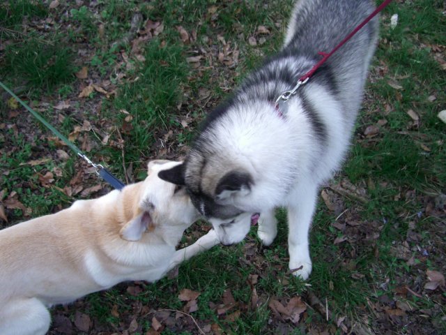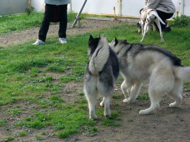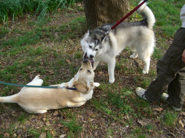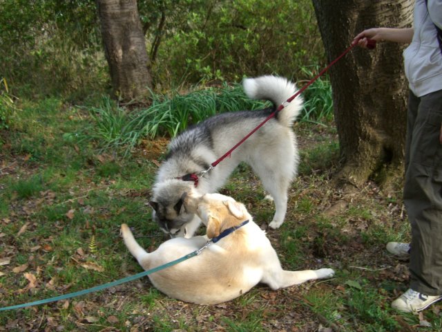 新たにお友達になったハスキー犬(オスカー君・5歳)とじゃれる。